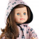 Esther is a 42 cm doll from the Soy Tú collection by Paola Reina. She has wavy brown hair, moving gray eyes, and wears a trendy sweater-style dress with a hood mad with printed fabrics in pink and black colours. She also has black velcro boots.
